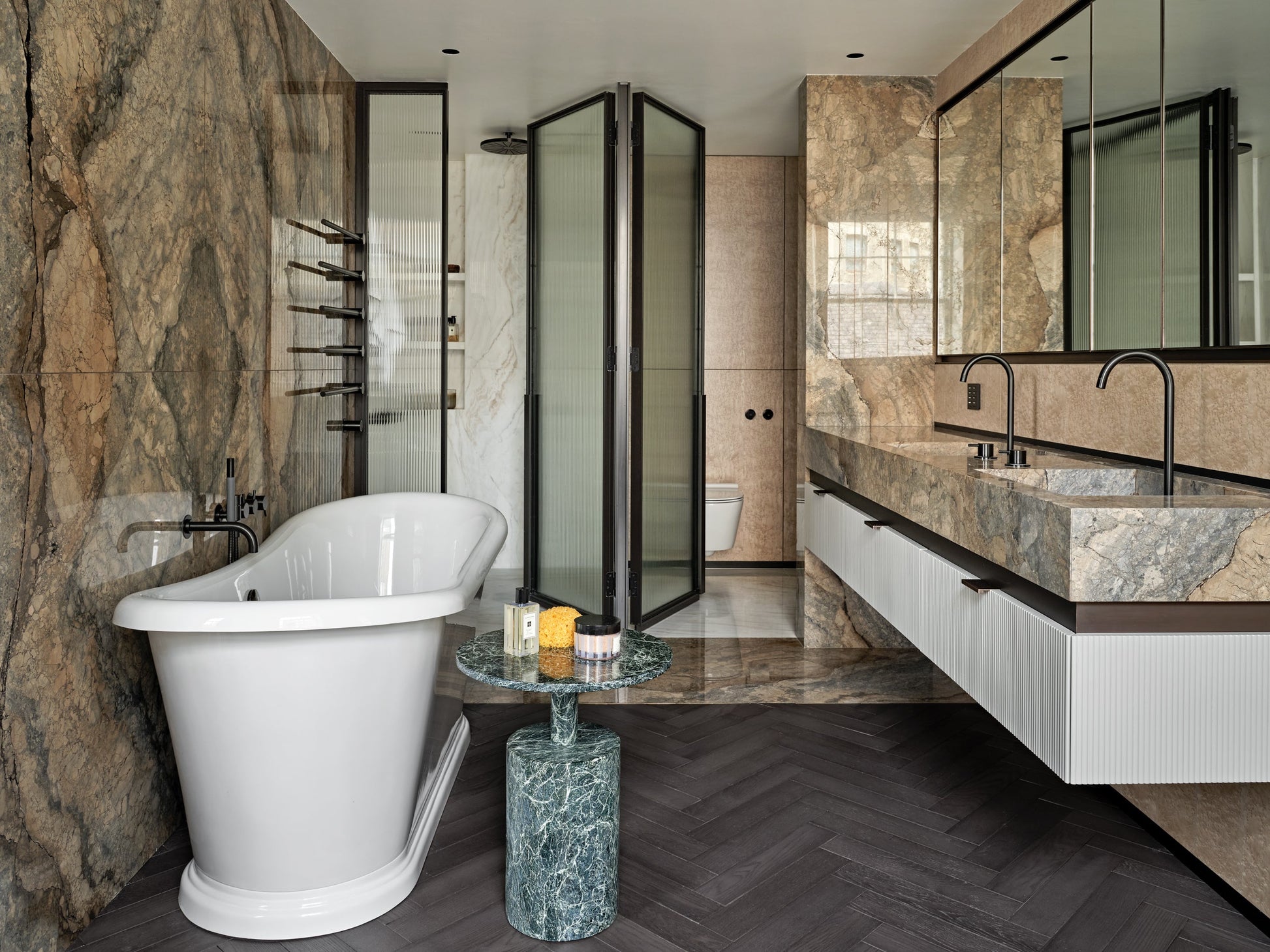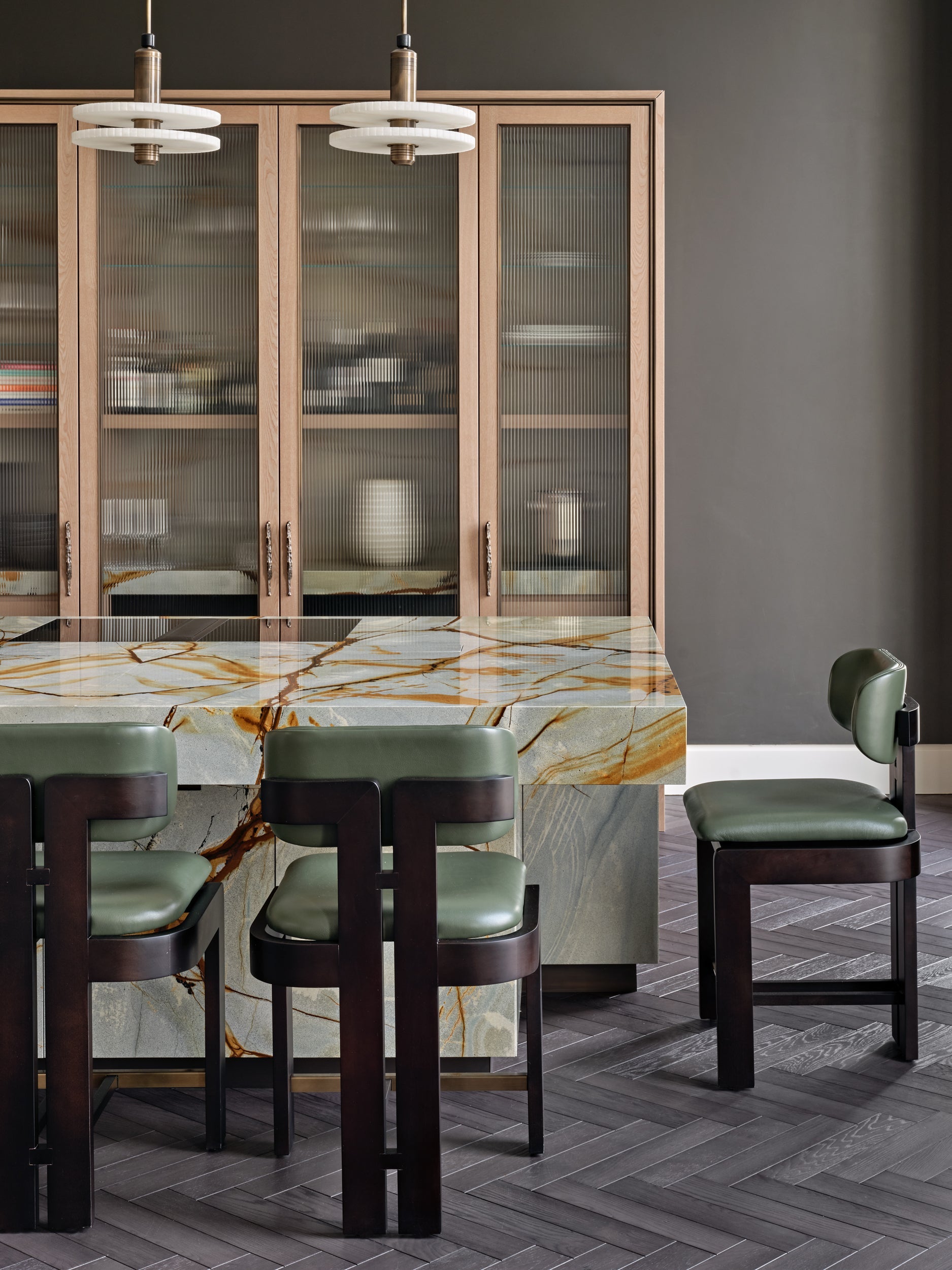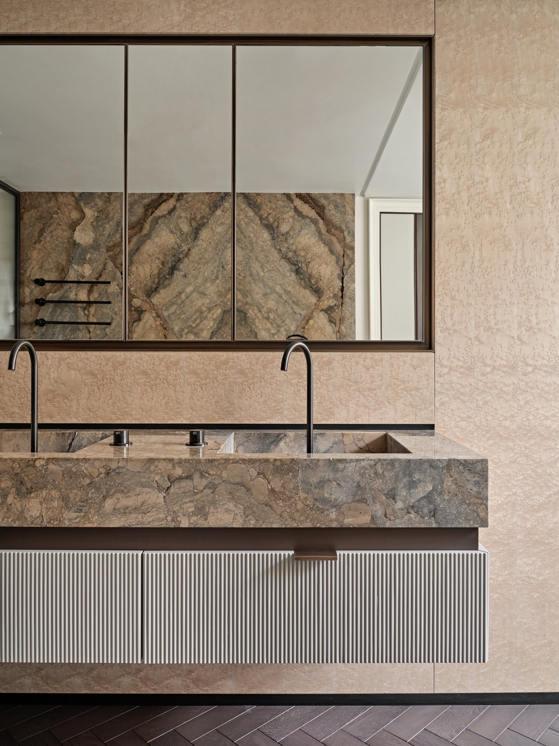This home celebrates the owner’s art collection and their love of discovering pieces and displaying them in style. It is a listed building with impressive views over Kensington Gardens, so we devised ways to create a feeling of openness without touching the fabric of the building. Carefully placed mirror panelling and luxurious chevron flooring provide the perfect pared-back backdrop for antiques, collectable 20 th century furniture and artworks. As Bergman Design House is also known for being product designers in London - Bespoke furniture and colour schemes are anything but new to them. This home is subtly echoing the existing shapes and tones in the owner’s collection, complementing but never detracting from their beauty. In this way, the design plays to the strengths of the architecture and treasured objects, ensuring the rooms exude a sense of balance and considered calm.
