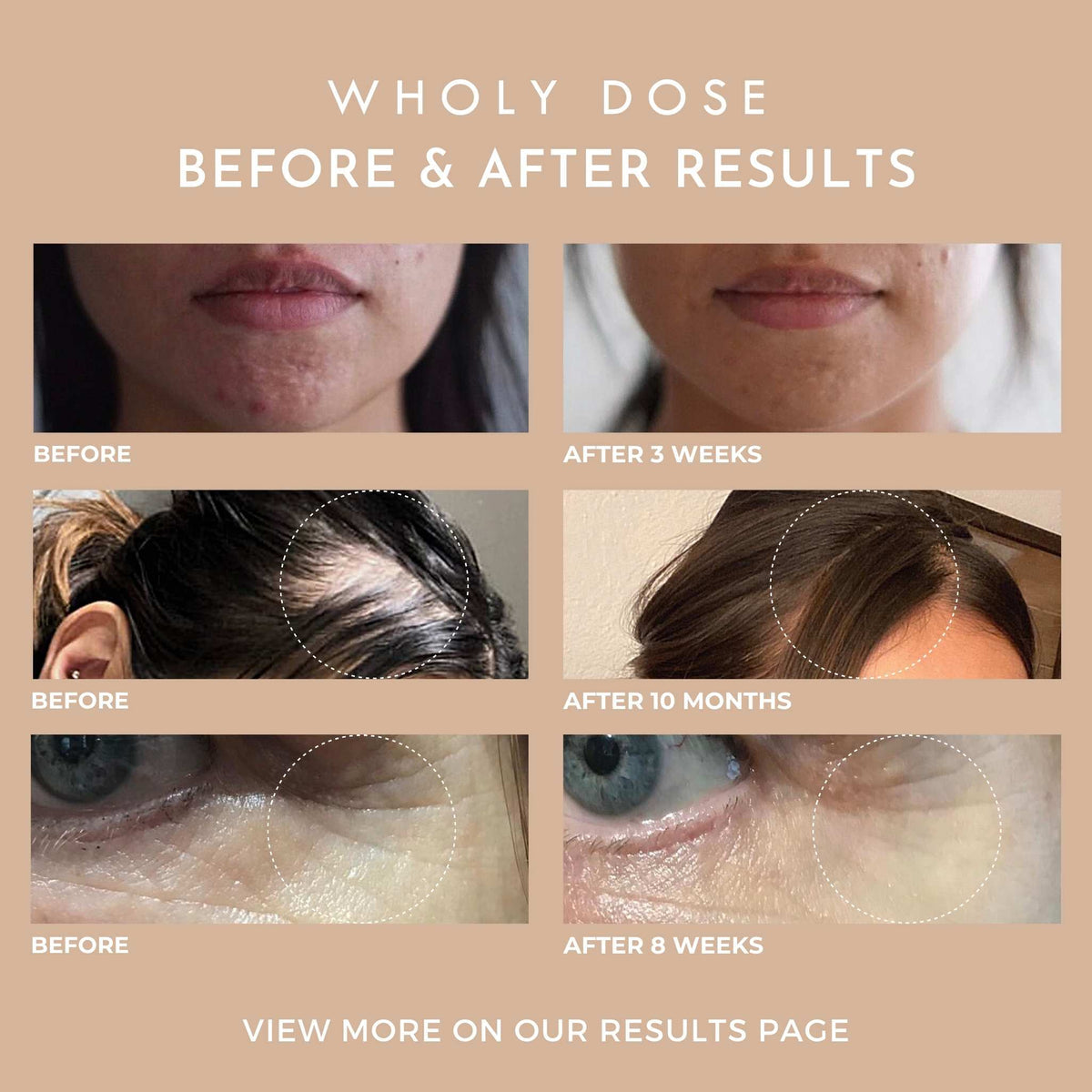 Drinking our collagen daily is clinically proven to improve skin, hair, nails, joints, and overall health in 4-8 weeks*