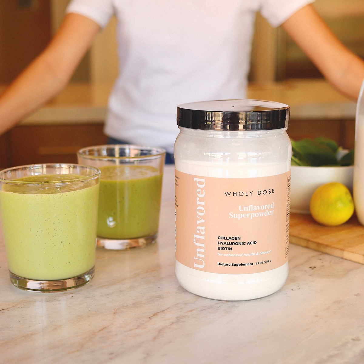 Sip your way to your best beauty and health with our versatile Unflavored Superpowder, a premium blend of marine collagen with hyaluronic acid and biotin supplement powder.